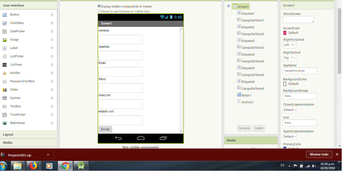 Programa numero 2 , un Formulario hecho en la plataforma de creación por bloques de MIT APP INVENTOR